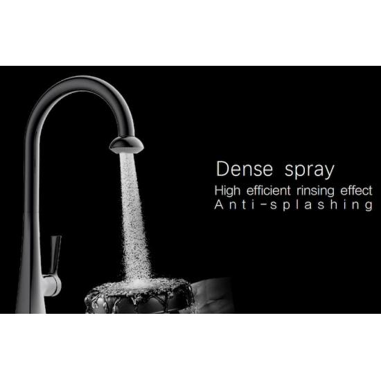 Guarda il piacevole effetto di adattamento e l'effetto anti-schizzo sul design del rubinetto della cucina